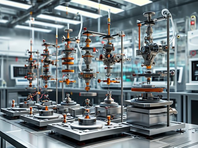 8.三坐标测量机:精确测量零件的几何尺寸和形位公差;接触式或非接触式探头,计算机辅助,三维建模,自动报告生成。